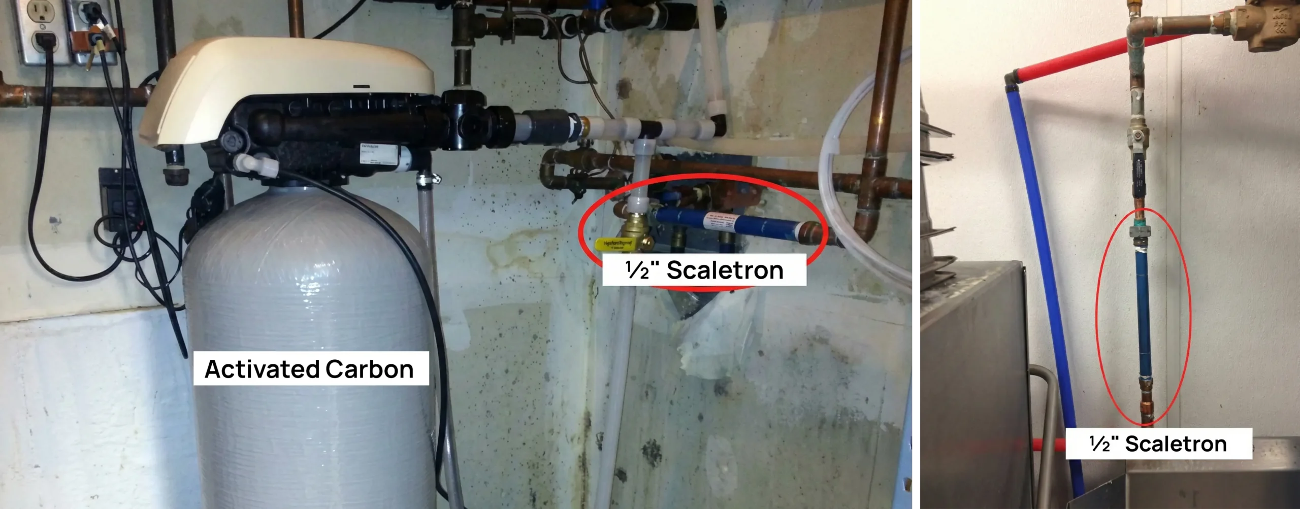 1/2” Scaletron on main water supply and 1/2” Scaletron installed prior to dishwasher